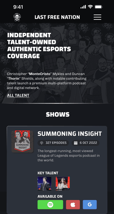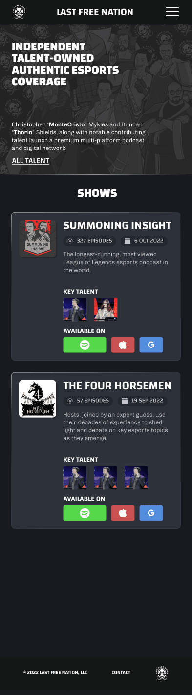 In this project I took on the task of redesigning an existing website. The goal was to help LFN better connect with their existing audience and appeal to new fans. Brand identity came first followed by a clear presentation of content.